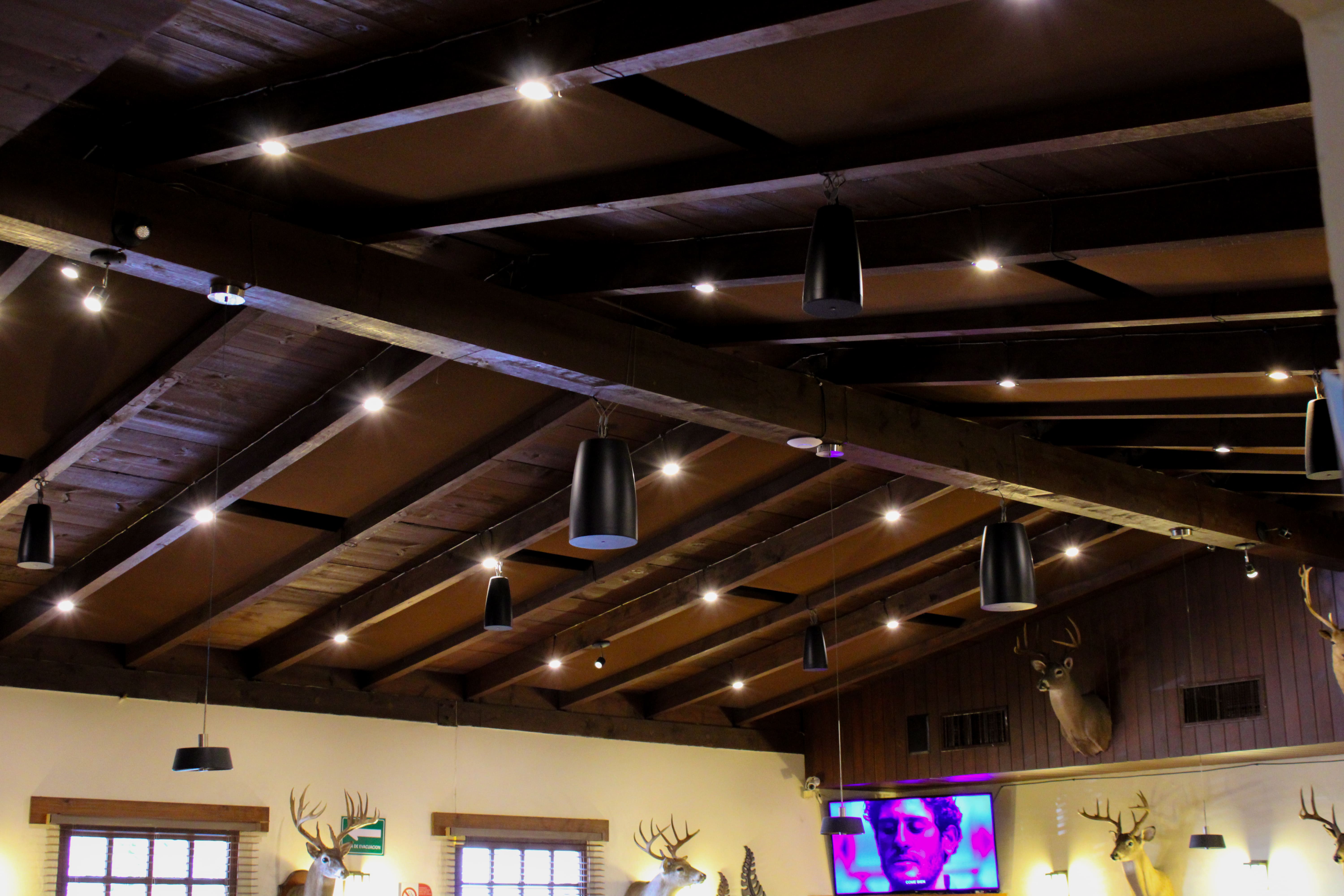 Por carencias de iluminación se nos pidió el apoyo en el área principal del restaurante. Se buscó mantener la esencia del espacio sin alterar tanto el ambiente; por lo tanto se propuso instalar spots LED Slim de sobreponer en luz cálida, con atenuadores. Nuestro objetivo era mejorar la experiencia de los comensales en el restaurante, cuidando la atmósfera y el confort del mismo.