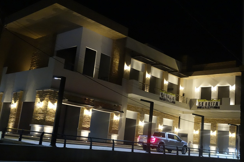 Esta plaza comercial ubicada en Huejutla de Reyes, Hidalgo fue iluminada con arbotantes, empotrados, postes estela y estancas a prueba de vapor y polvo.